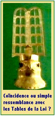 Or ces deux personnages ne tiennent pas dans leurs mains une simple forme du sceptre OUAS des dieux, mais une forme composite du sceptre où s'additionne ce genre d'électro-aimant mystérieux (semblable à la tête d'Osiris sur image B) et qui nous laisse rêveur car il y a 4700 ans l'Egypte venait à peine de découvrir l'écriture et elle allait se mettre à transporter (sans la roue) des blocs de plusieurs tonnes de pierre pour construire des pyramides L'image montre également ce symbole au plafond du présentoir dans lequel se trouve le dieu Ptah