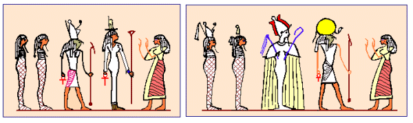 - Roi de l'Empire des morts et Régent du pays du silence, je viens à toi le cur plein de droiture, car j'ai été trouvé sans faute grave, je n'ai pas menti sciemment et je n'ai pas commis le mal. Donne-moi des pains qui proviennent des autels des Maîtres de vérité