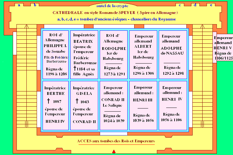 Plan des tombes impériales dans la crypte de la cathédrale de Spire