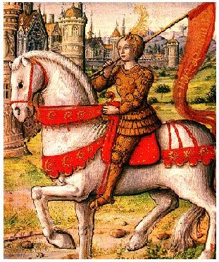 Enfin Jeanne reçut "les éperons d'or" privilège des chevaliers ayant obtenu l'adoubage traditionnel, ainsi qu'une armure payée par le Trésor royal. Puis elle réclame l'épée de Bertrand Duguesclin que son présumé père Louis d'Orléans avait acheté. Le plus surprenant c'est que son voeu fut exaucé !